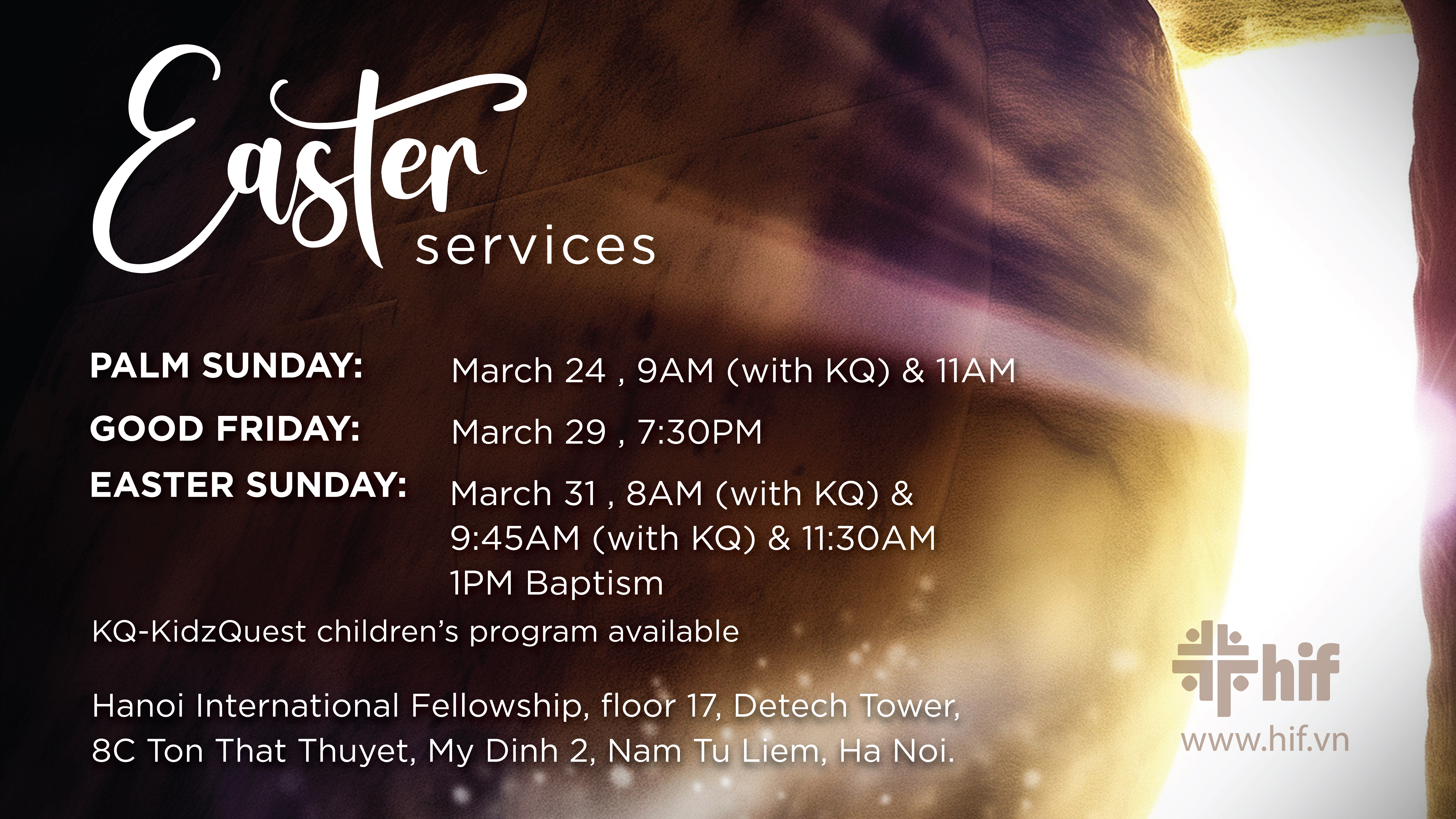 Hanoi International Fellowship (HIF) invites you to join us for this year’s Easter Services on 31st March: