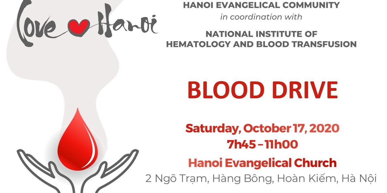Hanoi Evangelical Community, in coordination with the National Institute of Hematology and Blood Transfusion and the Vietnam National Coordinating Center for Human Organ Transplantation (VNHOT) Volunteer Program, have organized a blood drive: